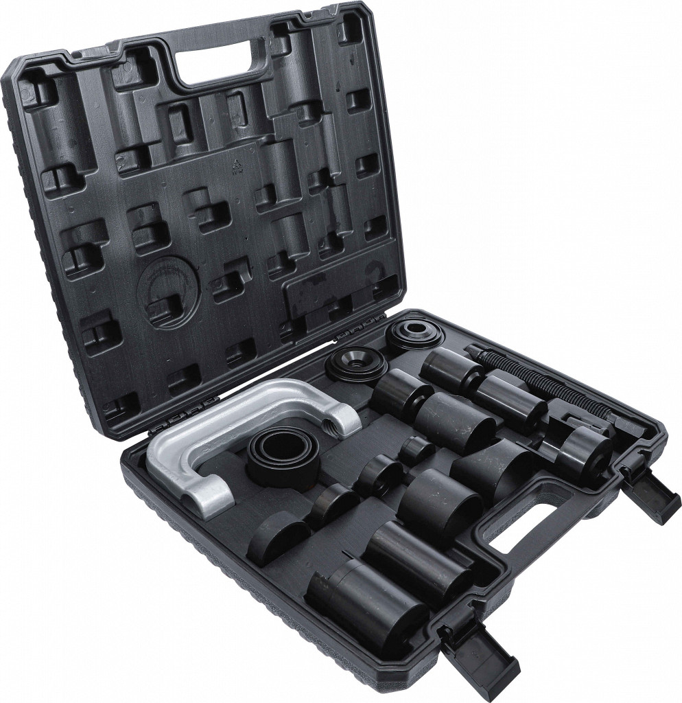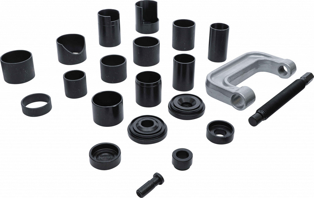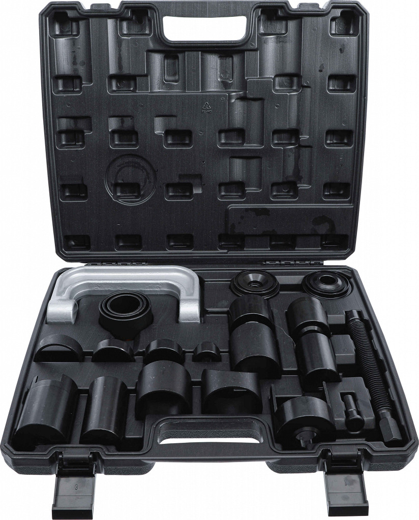 Ojačena izvedba z 152 mm odprtino vilic; komplet vsebuje vse potrebne puše in tlačne nastavke za menjavo krogelnih zglobov pri večini ameriških vozil (GM, Ford, Dodge 2WD in 4WD pick-upi do 1997); uporabno tudi pri številnih evropskih SUV vozilih in kombijih; komplet vsebuje: tlačno vreteno 230 mm, ročico za vreteno, tlačni nastavek za vreteno (dolžina 6.4 / 19 mm), zbiralne puše 44.5 x 50.8 mm, 57.2 x 63.5 mm, 69.9 x 76.2 mm, nosilne puše 57.2 mm, 44.5 mm, 36.5 mm, 69.9 mm, adapter za sprejemne puše 50.8 mm, sprejemne čaše 50.8 mm, 66.7 mm, 31.8 mm, 44.5 mm, montažno čašo 44.5 mm