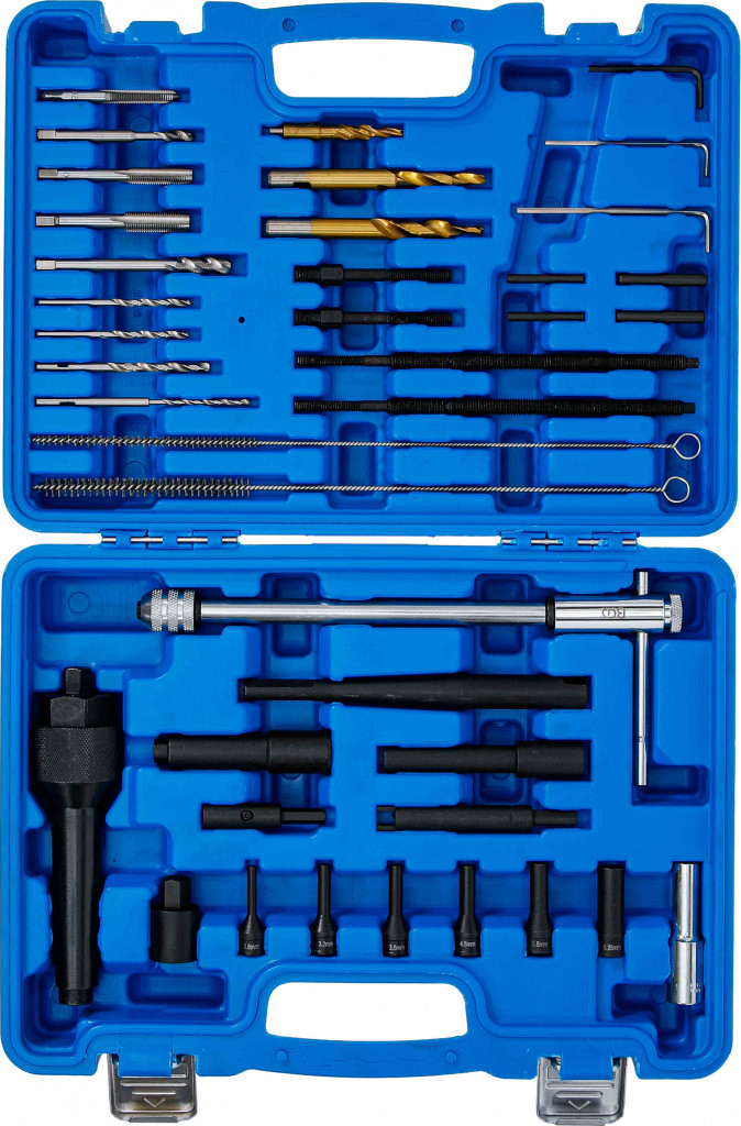 Komplet za montažo in demontažo žarilnih svečk ter obnovo navojev. Vključuje pipe, svedre, stopničaste svedre, vlečne vijake, čopiči, držala, centrirne in...