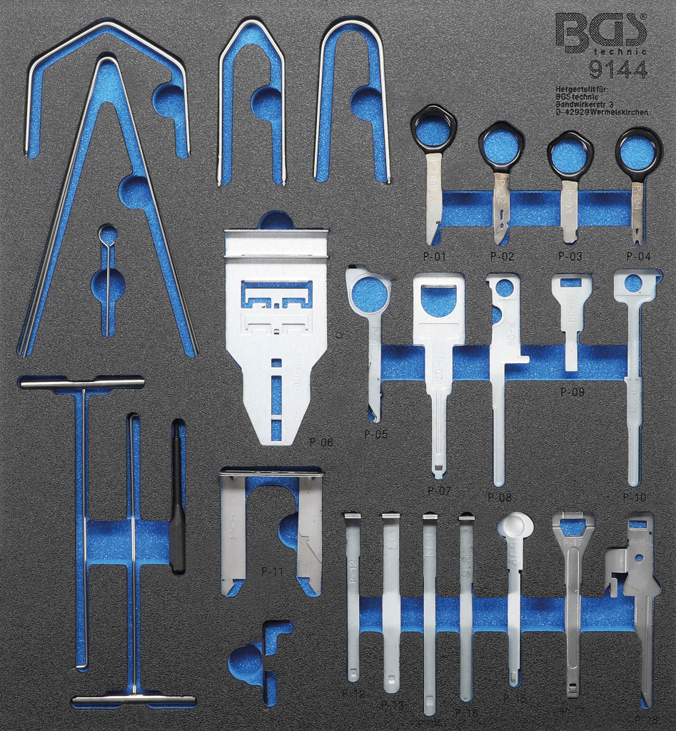 Komplet orodij za montažo avtoradiev in GPS sistemov za različne znamke: Blaupunkt, Becker, Grundig, Clarion, Kenwood, Sony, Porsche, Mercedes-Benz, Audi,...