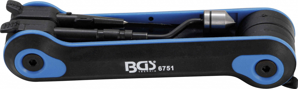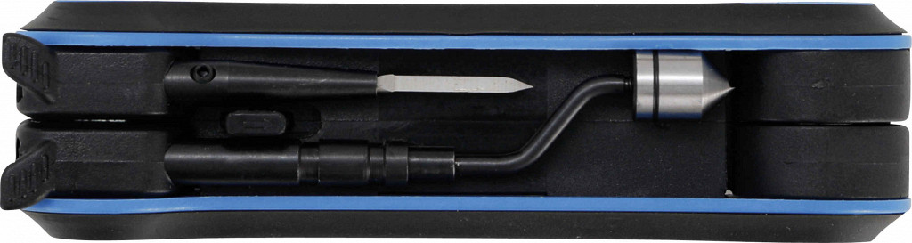 Univerzalno orodje z 4 rezili za obdelavo različnih materialov kot so jeklo, aluminij, medenina, baker in plastika, idealno za inštalaterje in mehanike, 4 zaklepna rezila: za jeklo/aluminij/plastiko, za medenino/lito železo, za posnemanje robov 1–10,4 mm ter posebno rezilo za orodjarje.