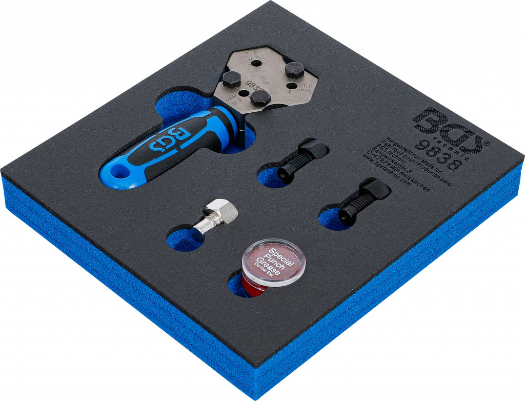 Orodje za raztezanje zavornih cevi premera 4,75–6 mm tipa DIN F, možno tudi na vgrajenih ceveh. Vsebina: osnovno orodje z dvokomponentnim ročajem, nastavki za različne premere, pozicijski vijak in mazivo.