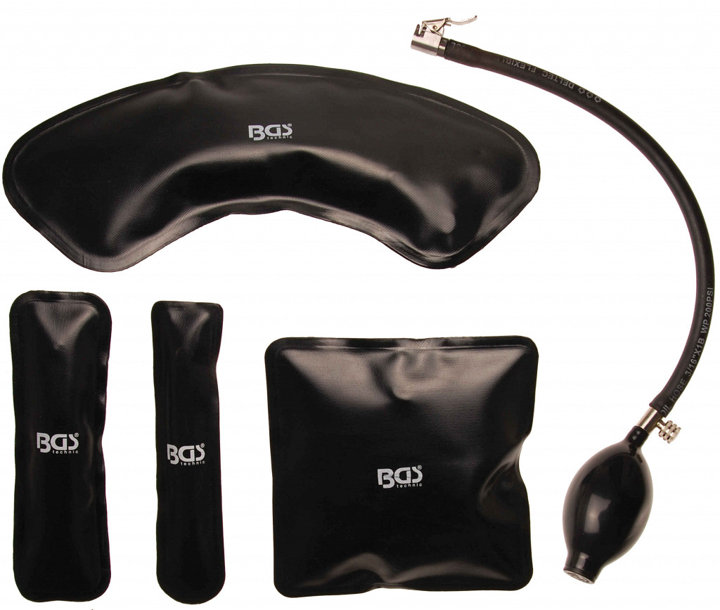 Za nepoškodljivo širjenje, npr. vratnih okvirjev pri nujnem odpiranju. Ročna črpalka z ventilom. Vsebina kompleta: 1 ledvičasta blazinica, dimenzije 320 x 150 mm; 1 blazinica 190 x 60 mm; 1 blazinica 160 x 40 mm; 1 blazinica 160 x 160 mm; 1 ročna črpalka s cevjo dolžine 350 mm.