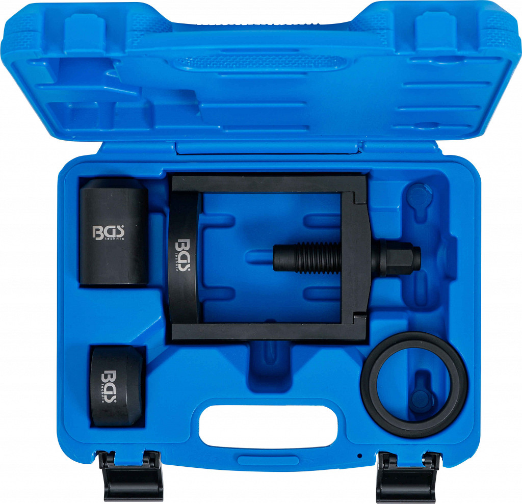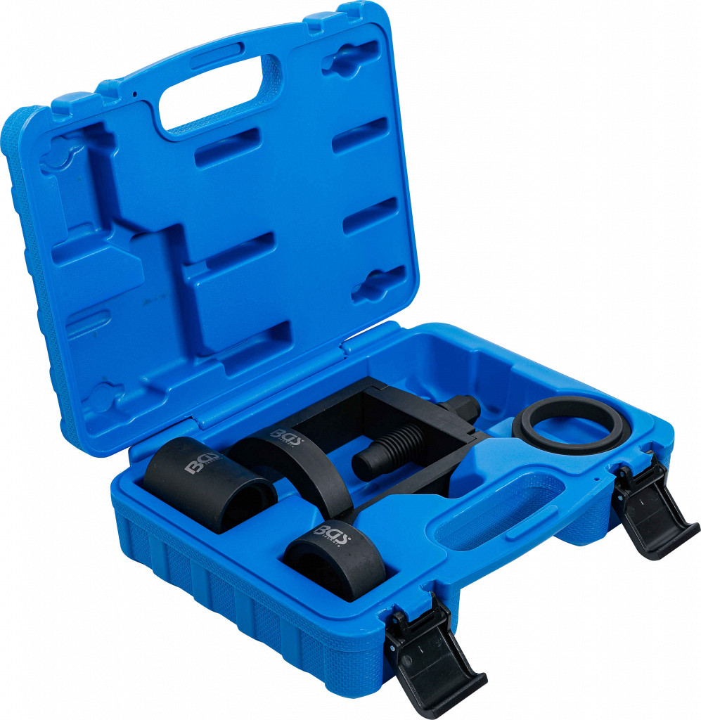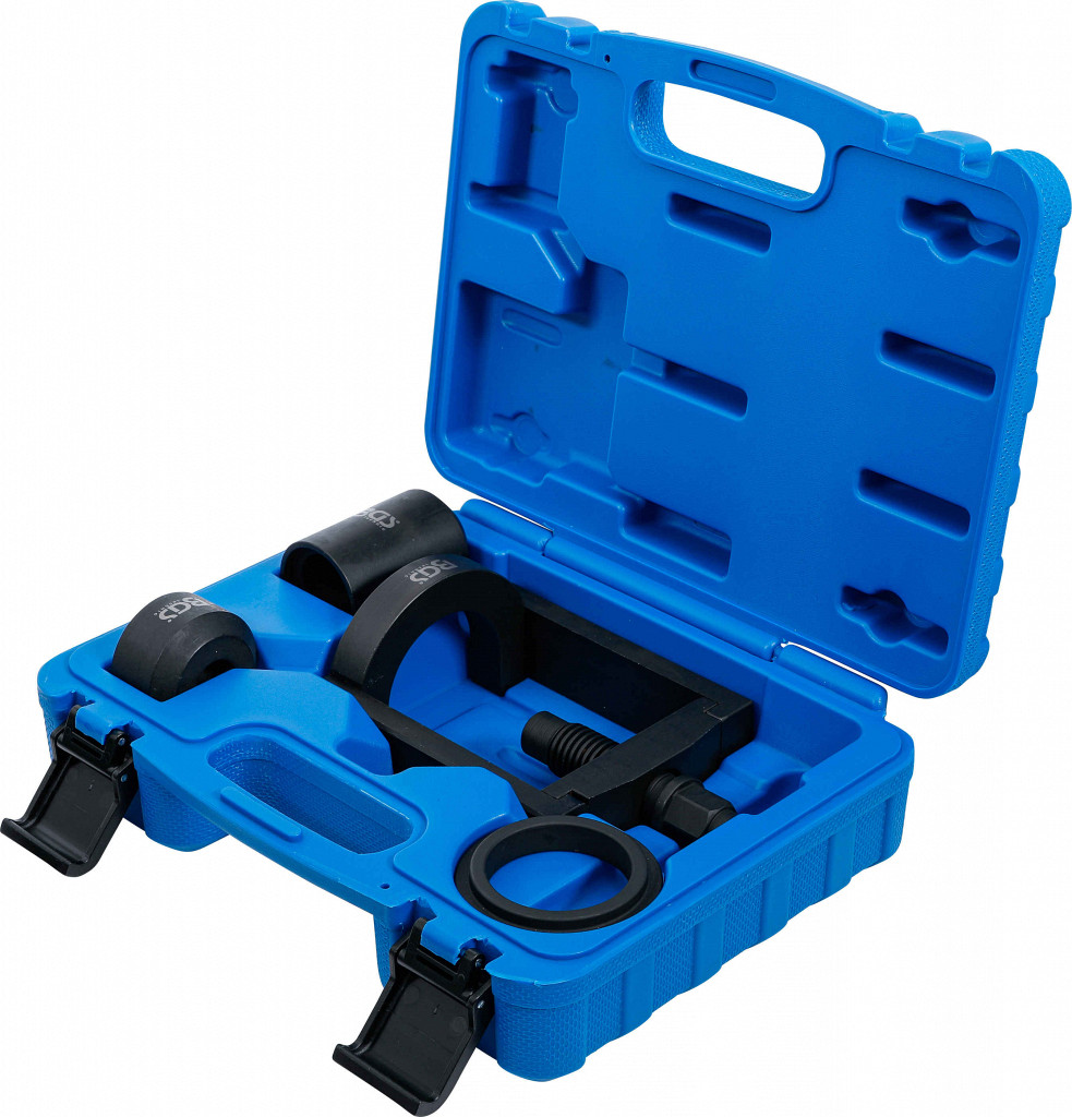 Orodje za demontažo in montažo spodnjih krogličnih zglobov na Mercedes-Benz W124, W129, W201. Vsebina: tlačni okvir, deli za montažo in demontažo,...