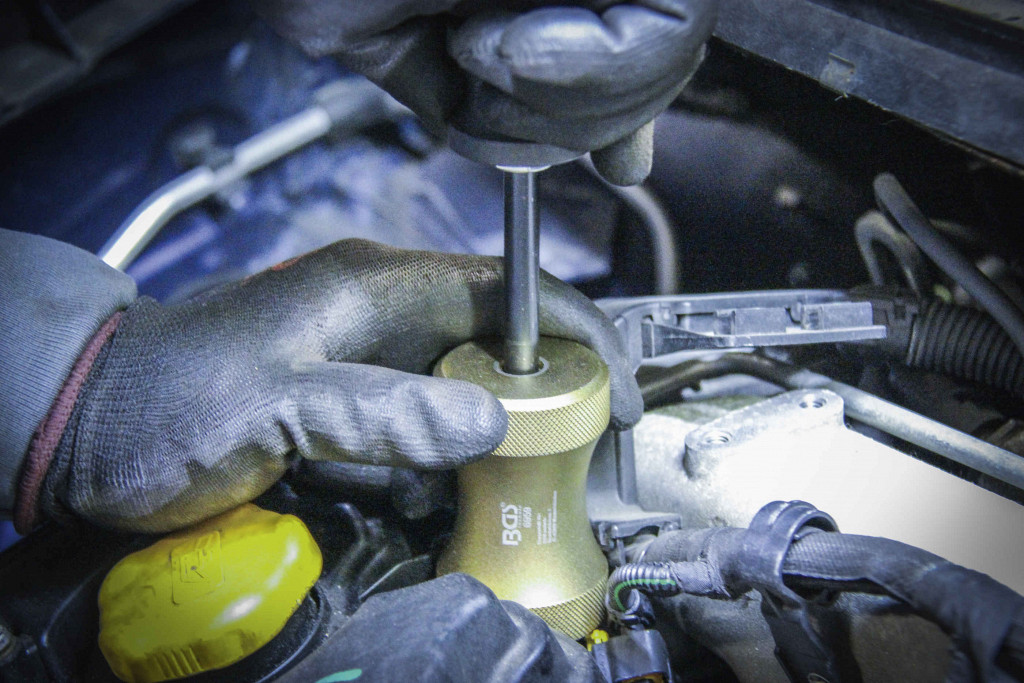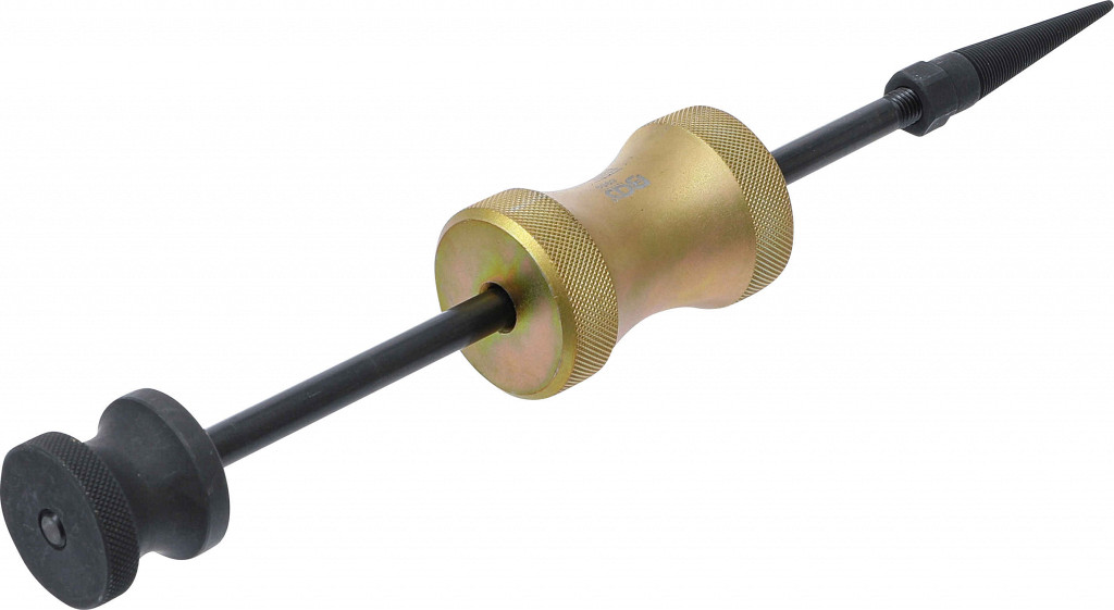 Za izvlek zapečenih bakrenih tesnil iz ležišča injektorja, univerzalno za BMW, Mercedes-Benz in PSA, s stožčasto konico 85 mm, drsnim utežem 840 g in ergonomskim ročajem.