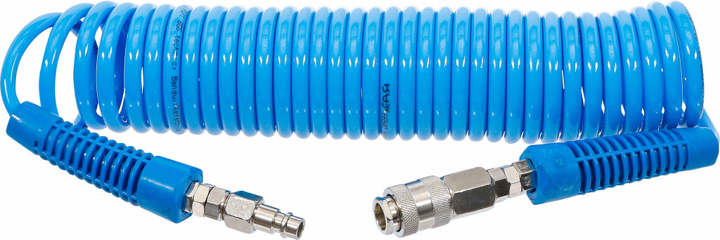 Pnevmatska cev iz trpežnega poliuretana z zaščito pred pregibanjem na spojkah ter vrtljivim snemljivim adapterjem.