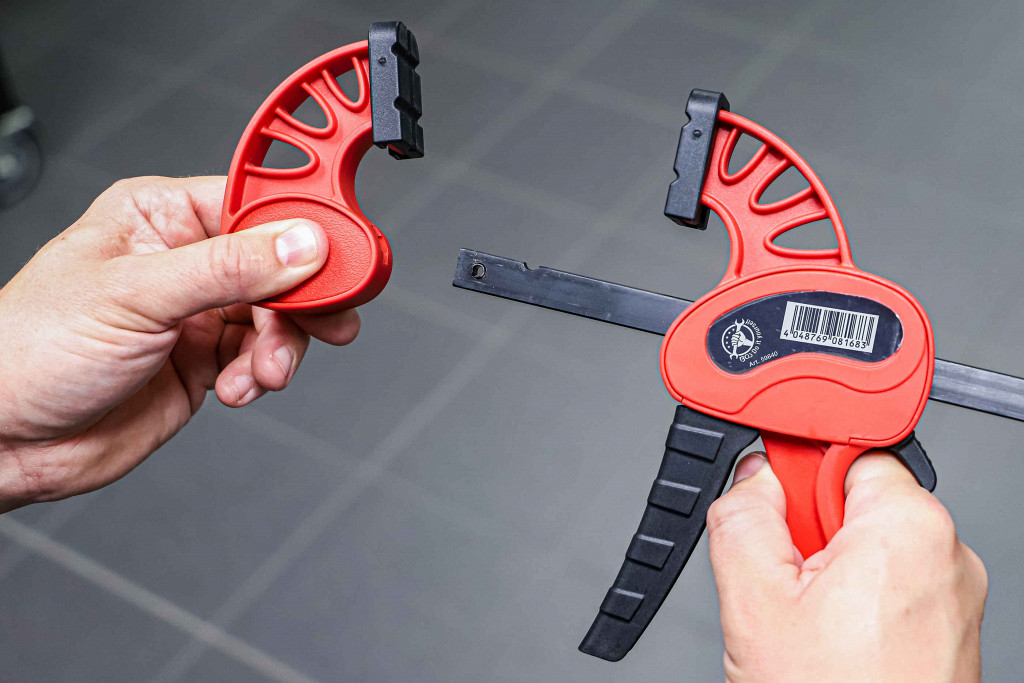 Enoročna spone za vpenjanje in širjenje, robustne zasnove, z mehanizmom za hitro sprostitev, ogljikovim jeklenim drsnikom, ojačanimi plastičnimi čeljustmi in...