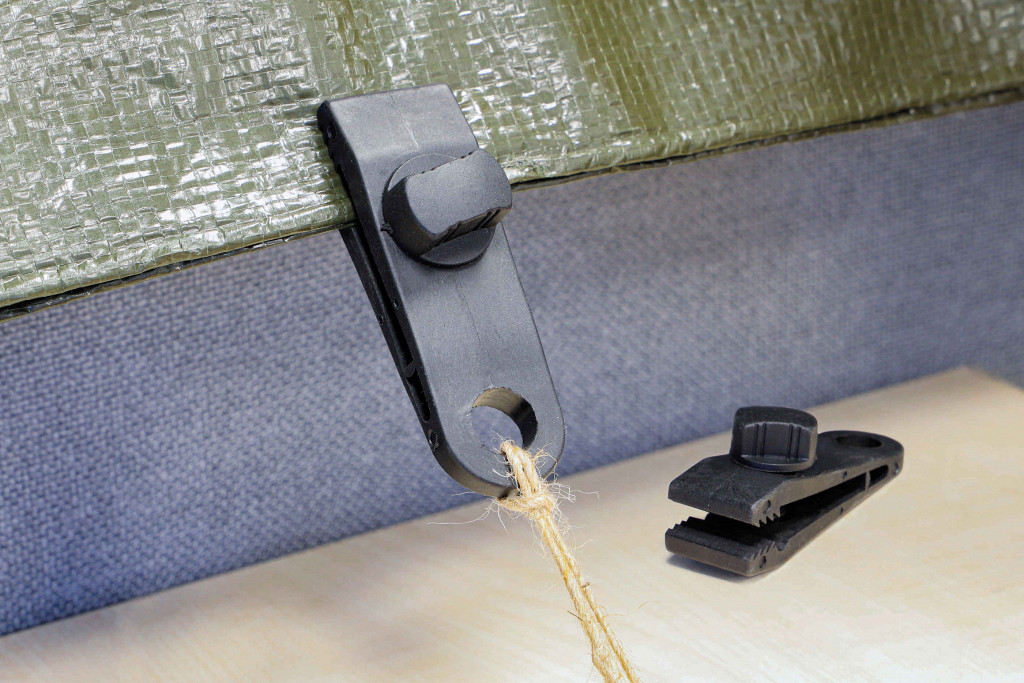 Za pritrditev ponjav za šotore, čolne, pokrove kot tudi sončna jadra in reklamne pasiceenostavno pritrditev sponk na ponjavo s sponko in vijakikontaktne površine na ponjavo so v izjemno širokih krokodiljih zobih za izjemno močan oprijem materialazagotavlja visoko trdnost tudi pri močnejši odpornosti na veterz okroglim očesom za pritrditev vrvi, gumijaste zanke, vponke, ekspanderjitrpežen material iz robustne in trpežne plastikeprimerna za notranjo in zunanjo uporabo.. odprtina čeljusti max.: 12 mm okroglo očesce Ø: 13 mm