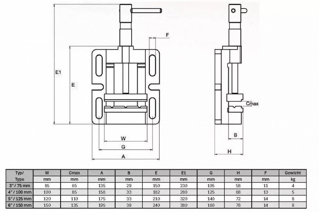 Strojni primež z mehanskim vpenjanjem z močnim prenosom vpenjalne sile. Konstrukcija primeža močne lite izvedbe s kaljenimi vodilnimi površinami. Posebej kaljena vodilna puša vretena. Čeljust z robom za vpenjanje ploščatih obdelovancev. Prizma v čeljusti za vpenjanje okroglih obdelovancev. Obe čeljusti sta kaljeni, brušeni, zamenljivi. Velika preciznost ponovljivosti vpenjanje. Ročaj, vreteno, vpenjalne čeljusti - brunirane.
