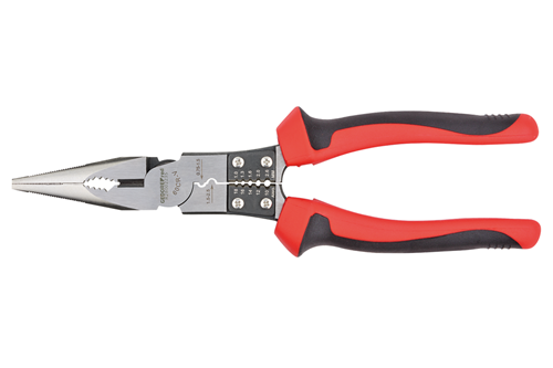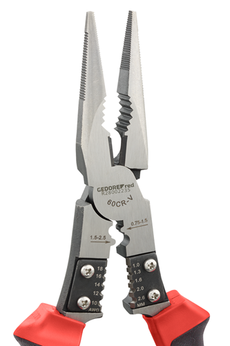 4-v-1 funkcija: Za rezanje, stiskanje, posnemanje izolacije in prijem kablov ter vodnikov. Območje rezanja do premera 2 mm – primerno za različne vrste kablov. Funkcija stiskanja za preseke 0,5–1 mm² in 1,5–2,5 mm² – idealno za električne povezave. Vgrajena območja za odstranjevanje izolacije za premer od 1 do 2,6 mm – čisto odstranjevanje izolacije. Ergonomski 2-komponentni ročaj – varen in udoben oprijem pri ponavljajoči se uporabi.