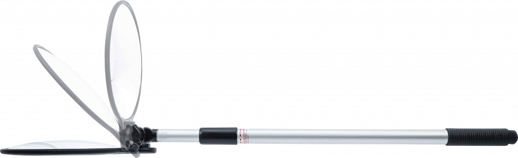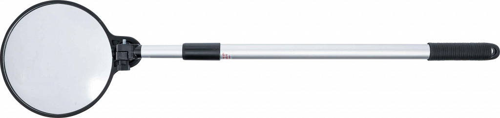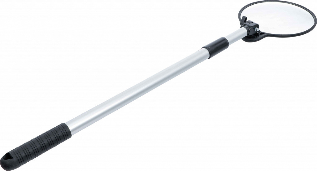 Posebej primerno za vizualni pregled pod vozilom za odkrivanje puščanja olja ali korozije. Aluminijast teleskopski ročaj nastavljiv od 660 mm do 1090 mm. Premer ogledala 200 mm. Ogledalo iz neprelomljive akrilne mase. Nastavljiv kot ogledala. Ergonomski ročaj.