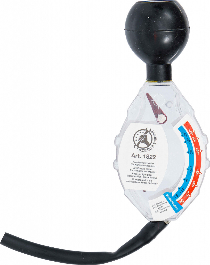 Primerno za vse etilenske in glikolne raztopine; deluje s toplimi in hladnimi tekočinami; za vizualni nadzor rje in umazanije v testiranih tekočinah