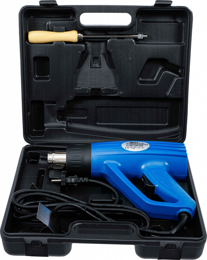 2 temperaturni stopnji, 400 °C / 600 °C; primeren za skrčenje embalaže in krilnih cevi, spajkanje neizoliranih kablov in konektorjev, sproščanje neizoliranih spajk, oblikovanje in varjenje plastike, sušenje površin, pospeševanje lepilnih procesov, odtaljevanje zmrznjenih stopnic, vratnih ključavnic itd., odstranjevanje zastarele barve, dezinfekcija površin, ogrevanje motorjev in delov menjalnika za montažo; obseg dobave: 1 vroč zrak, 1 redukcijska šoba (Ø 35 mm do Ø 25 mm), 1 trikotni strgalo