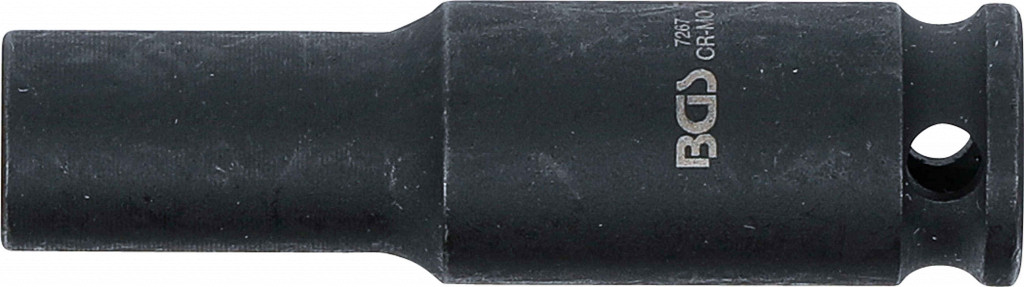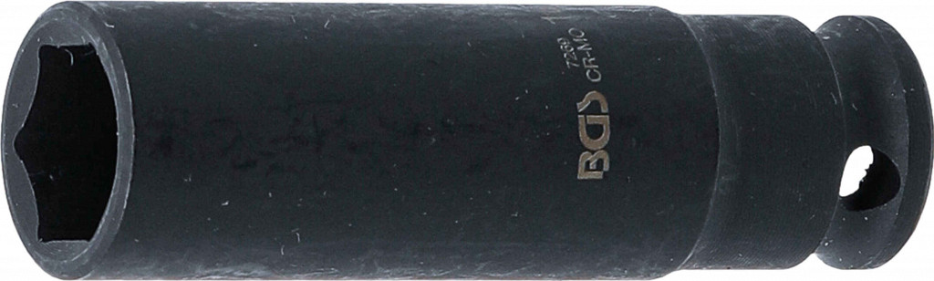 Globok nasadni ključ v metričnih dimenzijah za ročno in pnevmatsko uporabo, možnost pritrditve na udarni vijačnik s pinom in O-obročem.