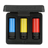 Plastični tulec, varuje občutljive površine, npr. kolesne matice iz lahke litine, kromirani deli, itd.. Za nadzorovano zategovanje kolesnih matic na platišča iz lahke litine. Različnih barv za hitro izbiro željene dimenzije. Dolžina: 85 mm Vsebina: Udarni ključi nasadni 17 19 21 mm.