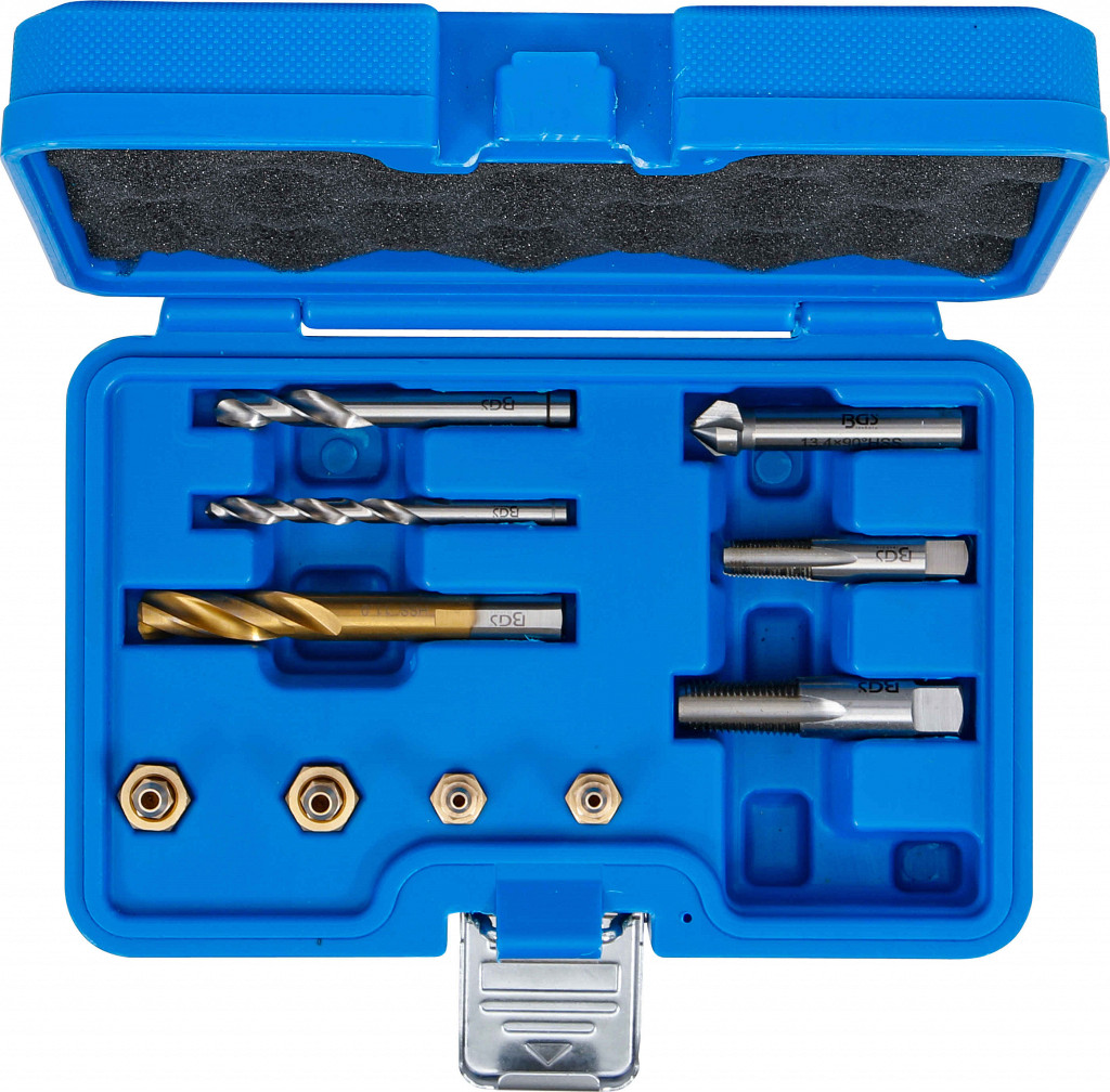 Komplet za vrtanje poškodovanih odzračevalnih ventilov, vključno z navojnimi pušami in novimi ventili, primerno za Audi, VW, Opel ipd., vsebuje svedre, navoje in konusni rezkar.