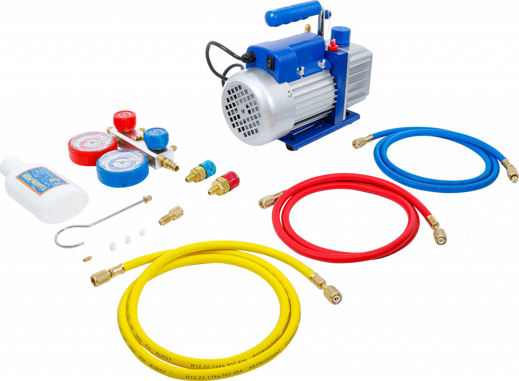 Primerno za popravilo klimatskih naprav (R12, R22, R134a) in vakuumske embalaže trdno aluminijasto ohišje. napajanje: 220 - 240 V | 50 Hzpretok: 57 l/min (2...