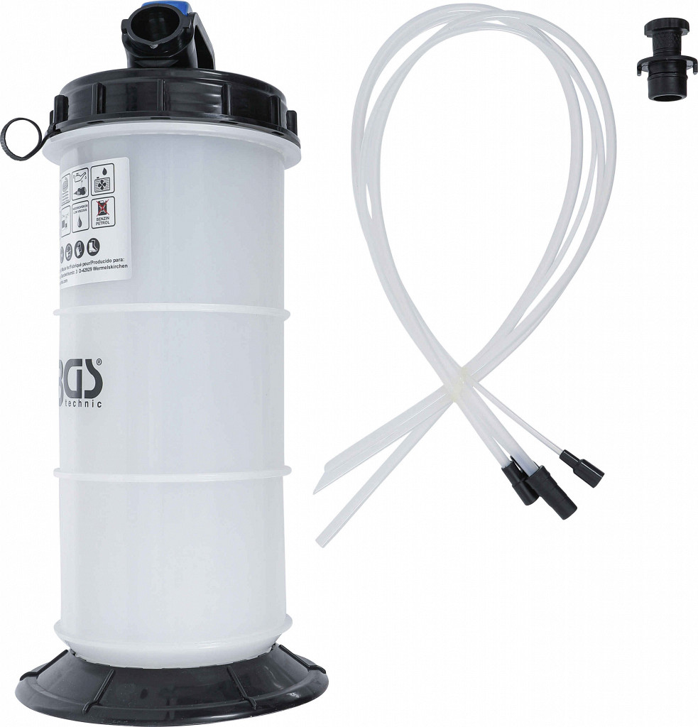 Za ročno sesanje tekočin brez napora sesanje s pomočjo vakuumskega principačisto, hitro in enostavno sesanje, aspiracija in odvajanje tekočinprimerna za mazalna olja, olje za avtomatski menjalnik, hladilno tekočino, zavorno tekočino, vodo, tekočine z nizko viskoznostjoz visoko kakovostnim ohišjem črpalke in ojačano glavo črpalkevključno z različnimi sondami za različne aplikacijez integriranim varnostnim ventilomprozoren rezervoar za preverjanje nivoja tekočine. Prostornina: 6 litrov. Obseg dobave:... 1 ekstrakcijska posoda z vakuumsko ročno črpalko1 merilna cev za ekstrakcijo olja 5 mm1 merilna cev za ekstrakcijo olja 6 mm1 ekstrakcijska cev 8 mm1 glavna cev za ekstrakcijo 10 mm