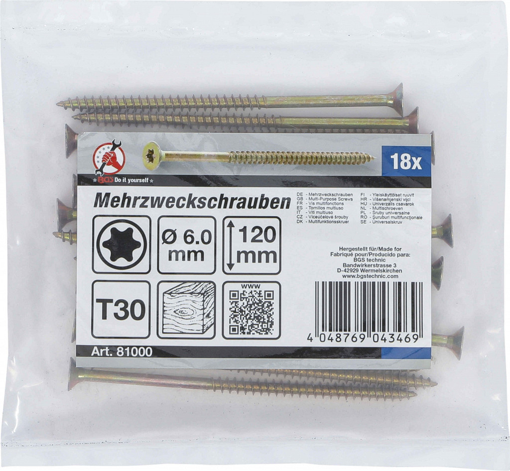 | Večnamenski vijaki TORX | T25 6,0×120mm 18kos |