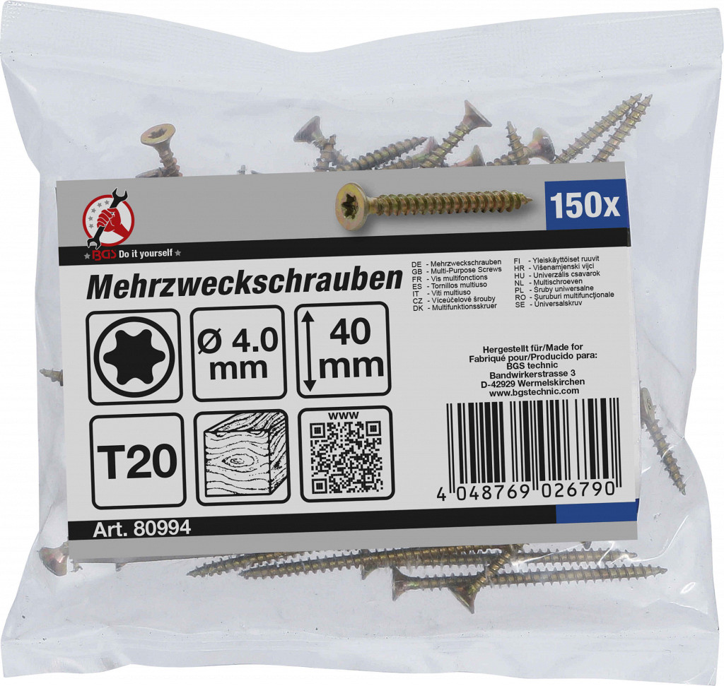 | Večnamenski vijaki TORX | T20 4,0×40mm 150kos |