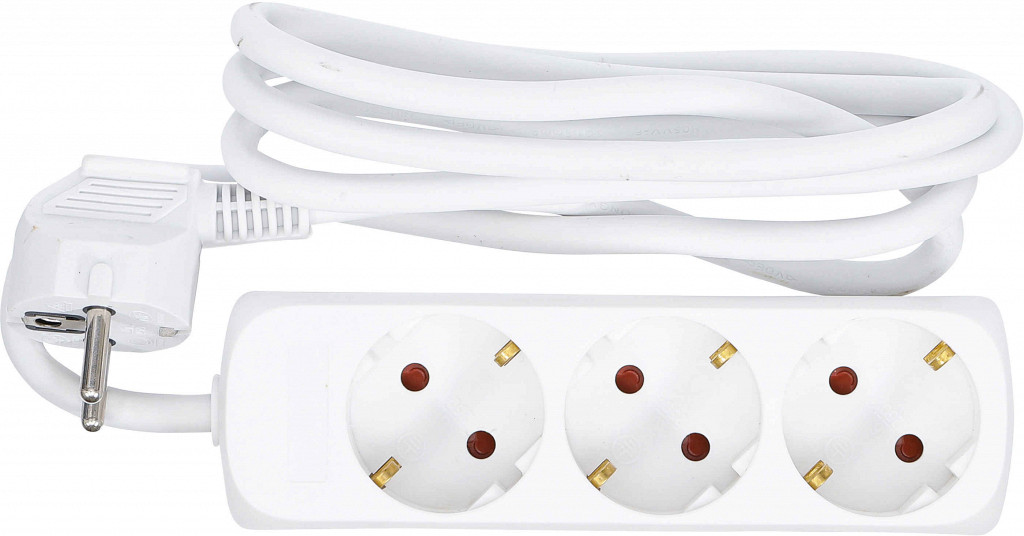 Primerno za notranjo uporabo, vtič in vtičnica varnostnega tipa, vtičnice pod kotom 45° primerne tudi za kotne vtiče, vtič pod kotom, 3 vtičnice, največ 16 A, zaščitni razred 1, tip vtiča CEE 7/7, kabel bele barve, tip kabla H05VV-F.