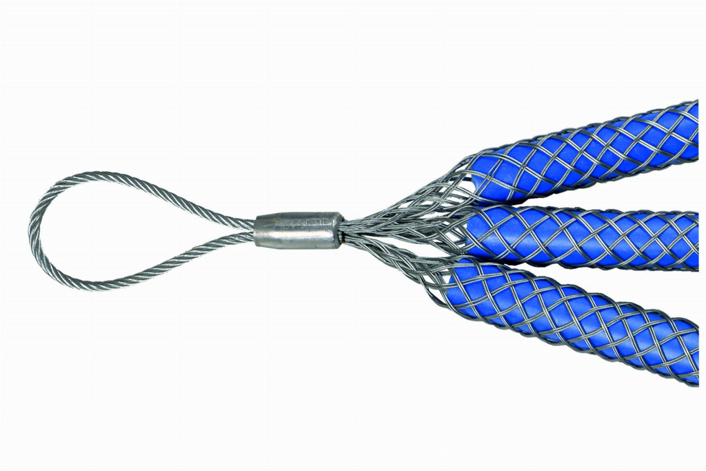 Trojna fleksibilna jeklena mreža za vleko, ki se sama zategne okoli kabla med vlečenjem, kar pomaga varno in učinkovito potegniti kabel skozi cevi, kanale...