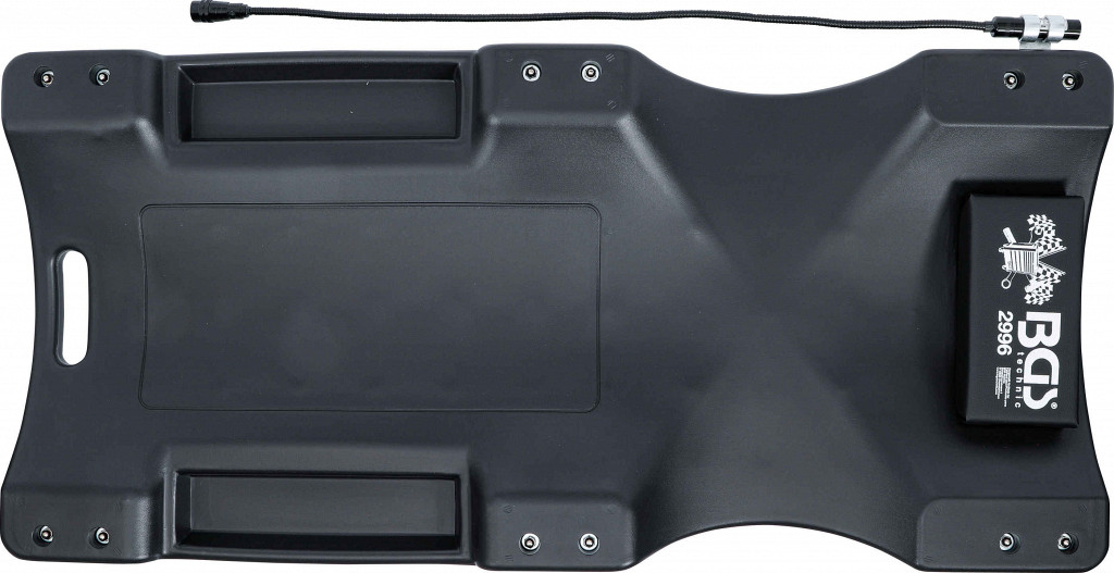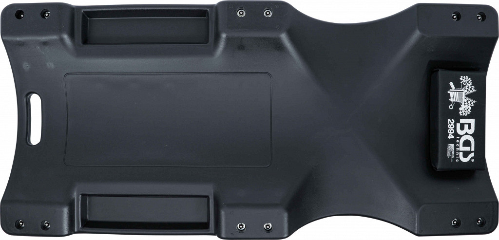 Izdelano iz trpežne PE plastike. 6 koles Ø 75 mm. Vključena LED delovna luč za osvetlitev pod vozilom. Udoben vzglavnik.