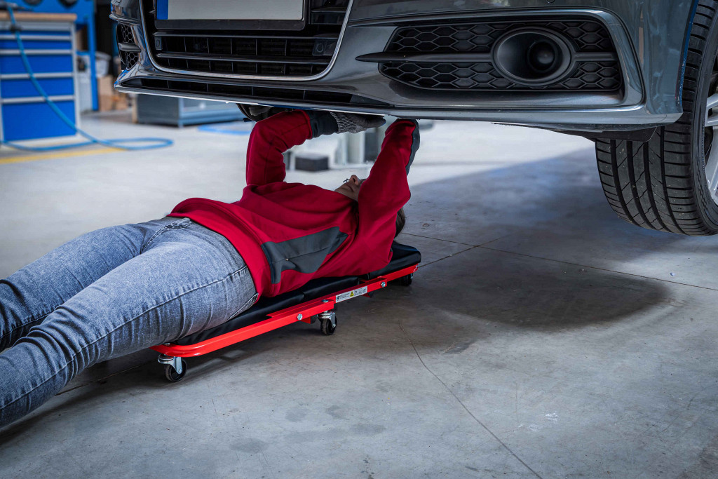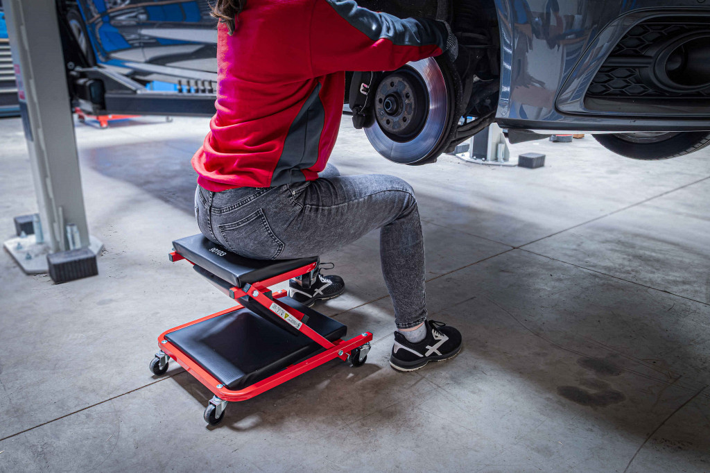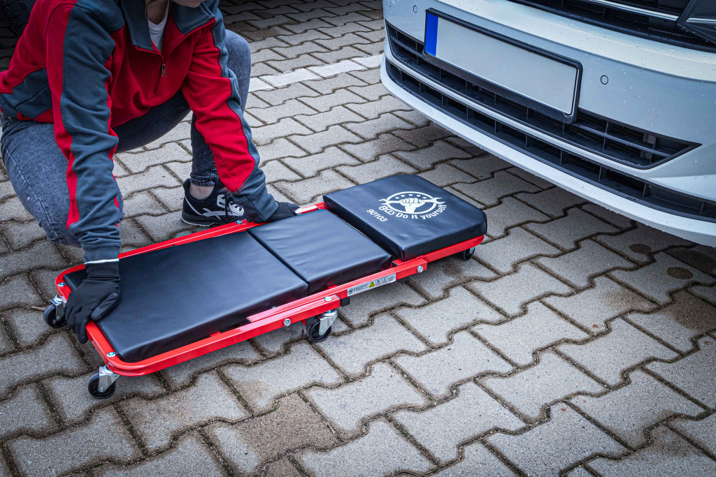 Za udobno delo na vozilu in pod njimIzjemno nizka skupna višina za udobno delo se lahko uporablja kot sedež ali plazeča ergonomska ležiščna površina za udobno delo v ležečem položajustabilna, robustna konstrukcija cevnega jeklenega okvirja z oblazinjeno ležečo površinočrni kovinski okvir, prevlečen s prahomoblazinjen naslon za glavoprilagodljiva uporaba, zaradi 6 360° vrtljivih plastičnih koles (odpornih na olje in nizko raven hrupa)pralno oblazinjenje.. Zmogljivost plazeč: max. 150 kgProstornina sedeža: max. 120 kgDimenzije sedeža: 460 x 410 x 370 mm Dimenzije plazeče: 910 x 410 x 120 mmMaterial okvirja: cevno jekloŠtevilo koles: 6