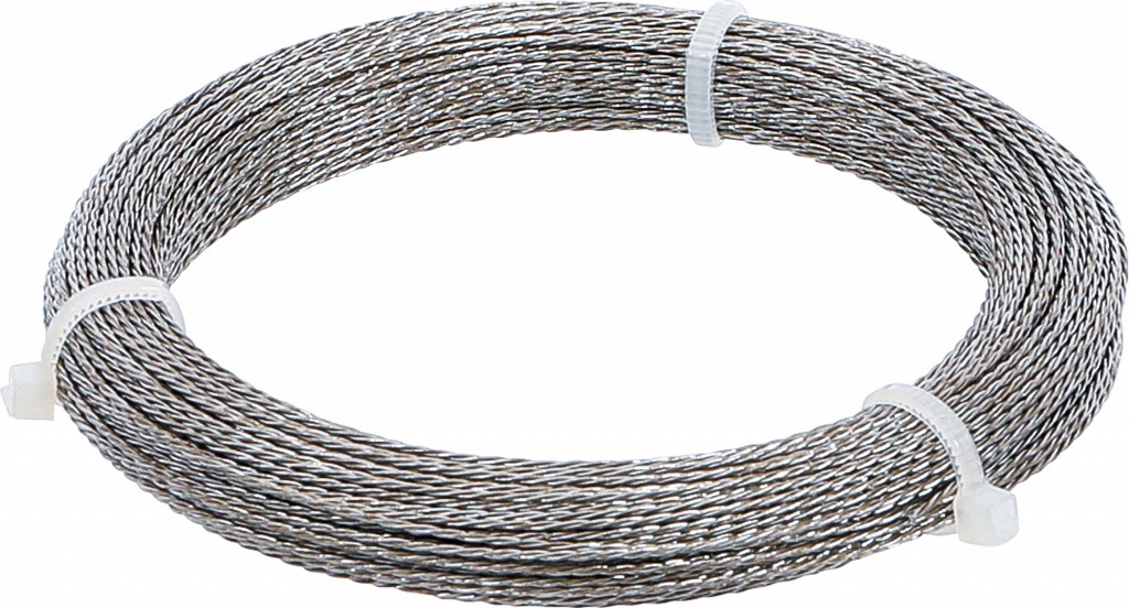Jeklena pletenica iz treh žic za rezanje zalepljenih stekel. Fleksibilna, primerna kot nadomestna žica za BGS 6666, 69500, 69505, 8003, 8004, 8022.