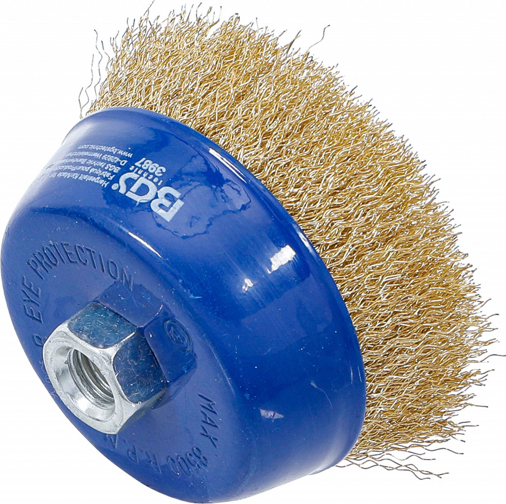 Skupna višina: 67 mm; Bruto teža: 354 g; hitrost pogona: 8500 vrt / min; Premer: 100 mm; Notranji navoj: M14 x 2 ; Material ščetin: jeklena žica; Površinska obdelava: medenina; Embalaža primerna za stensko obešanje: Da