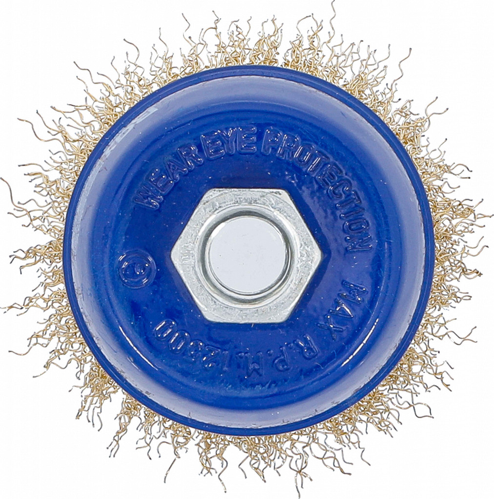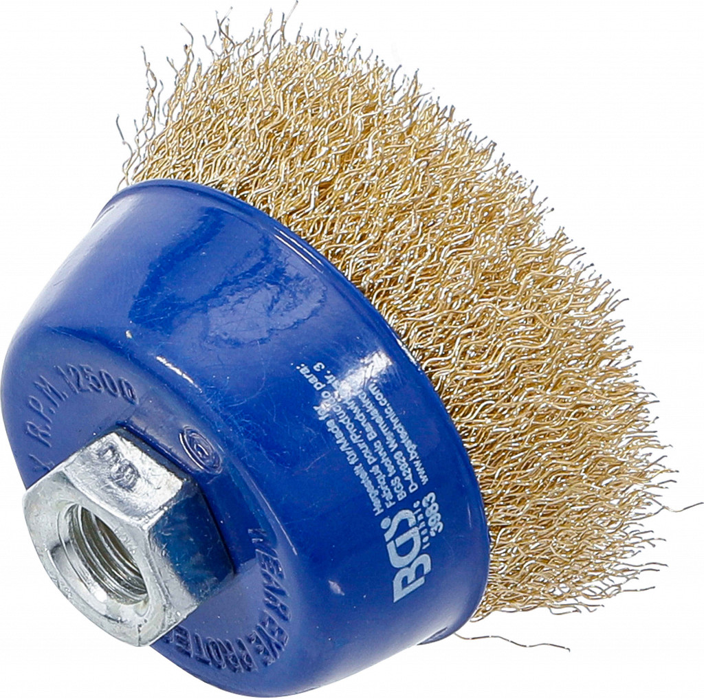 Skupna višina: 57 mm; Bruto teža: 214 g; hitrost pogona: 12500 vrt./min; Premer: 75 mm; Notranji navoj: M14 x 2 ; Material ščetin: jeklena žica; Površinska obdelava: medenina; Embalaža primerna za stensko obešanje: Da