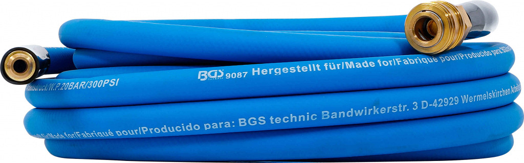 Zunanji premer: 15,5 mm; Delovni tlak: 20 bar; Bruto teža: 1430 g; Priključitev stisnjenega zraka: 1/4 "; Notranji premer: 9,7 mm; Material: PVC tkanina; Dolžina cevi: 10 m