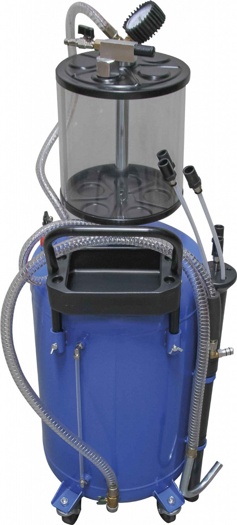 Profesionalna mobilna naprava za sesanje, prenos in odlaganje motornega, menjalniškega in diferencialnega olja. Rezervoar 70 l, pleksi merilni valj 10 l,...